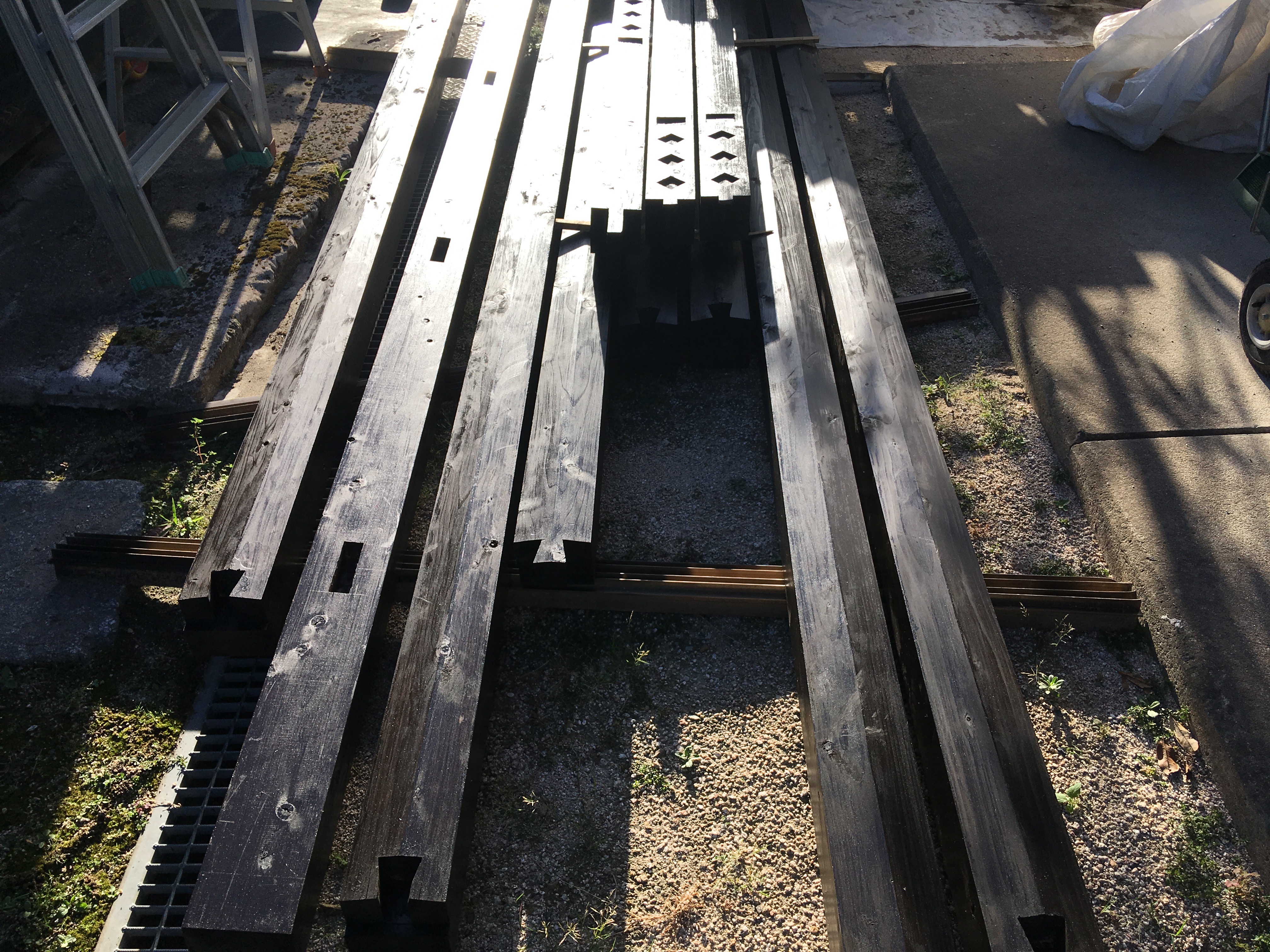 安芸高田市の古民家は基礎が終わり、大工さんの墨付け、刻みへと進んでいました。