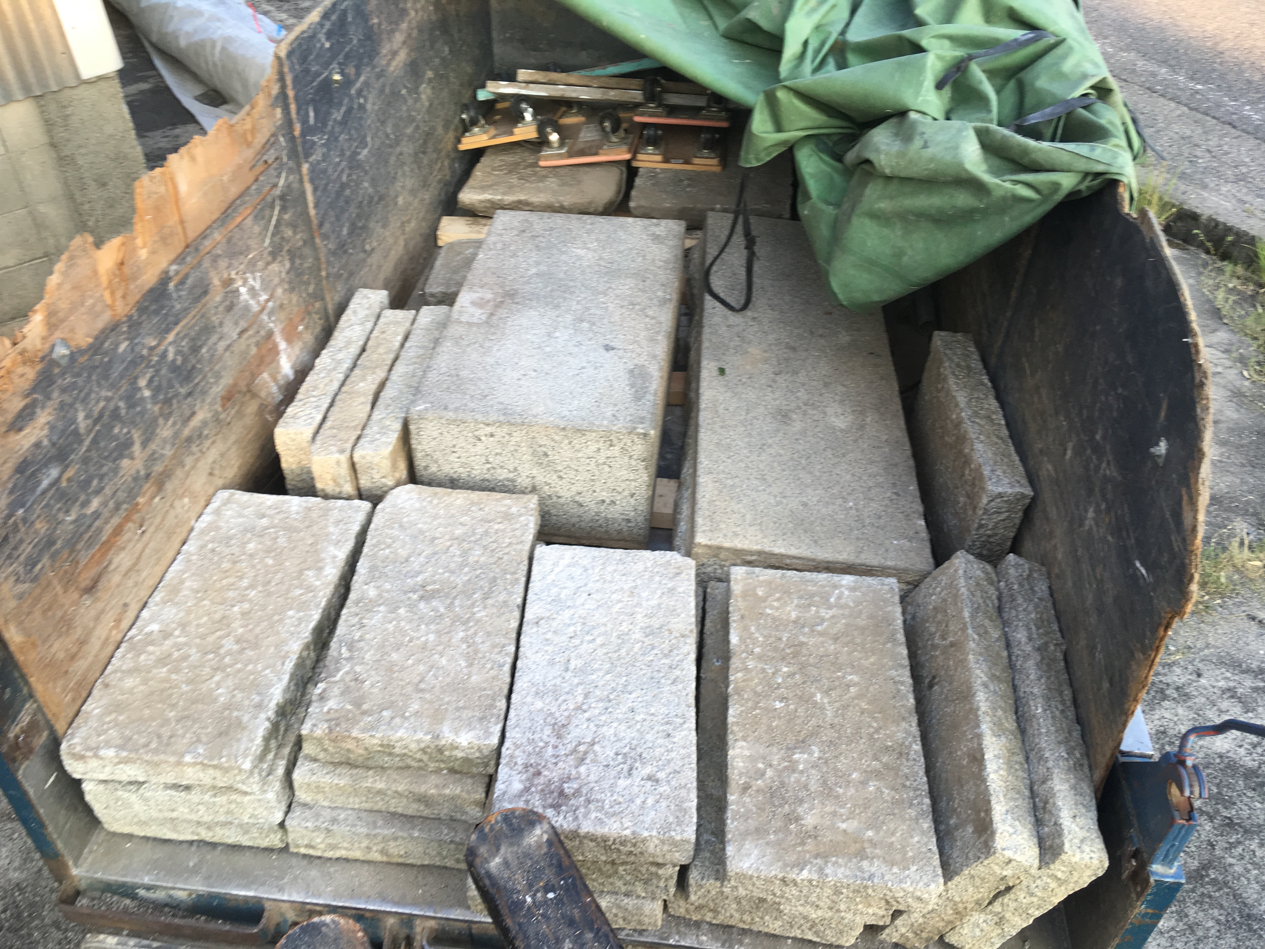 今回は庭や玄関に敷かれていた「御影石」の引き取り。