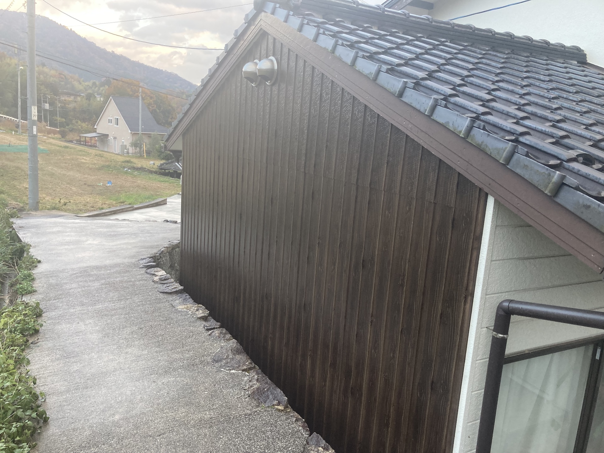 高台に位置し、屋根の出幅が短く雨がかりも気になる為、この度はトタン板を採用いたしました。