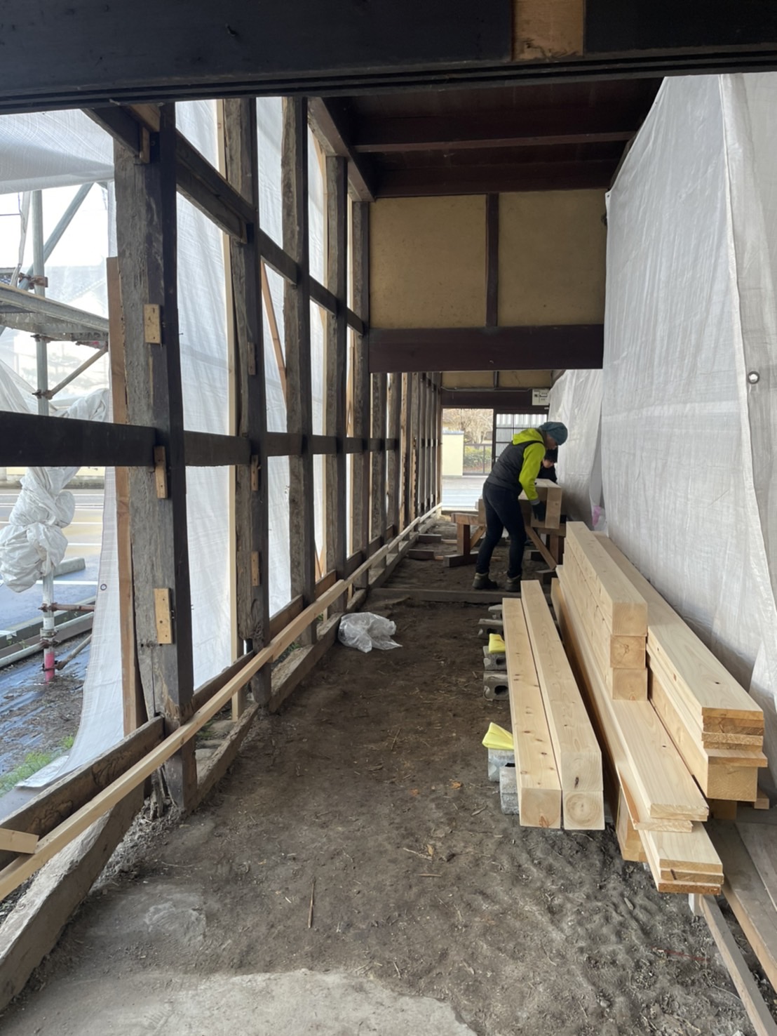 傷んだ土台の入れ替え、柱の根継ぎ、桁差し替えなど盛り沢山の内容。
