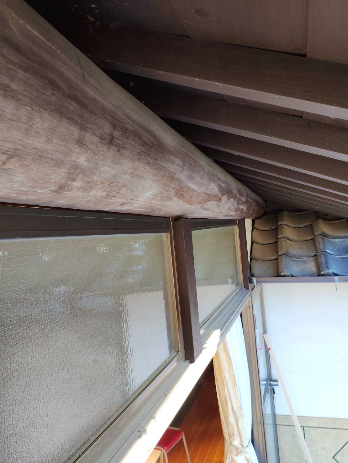 古民家では縁側上部に一際大きな梁が用いられています。